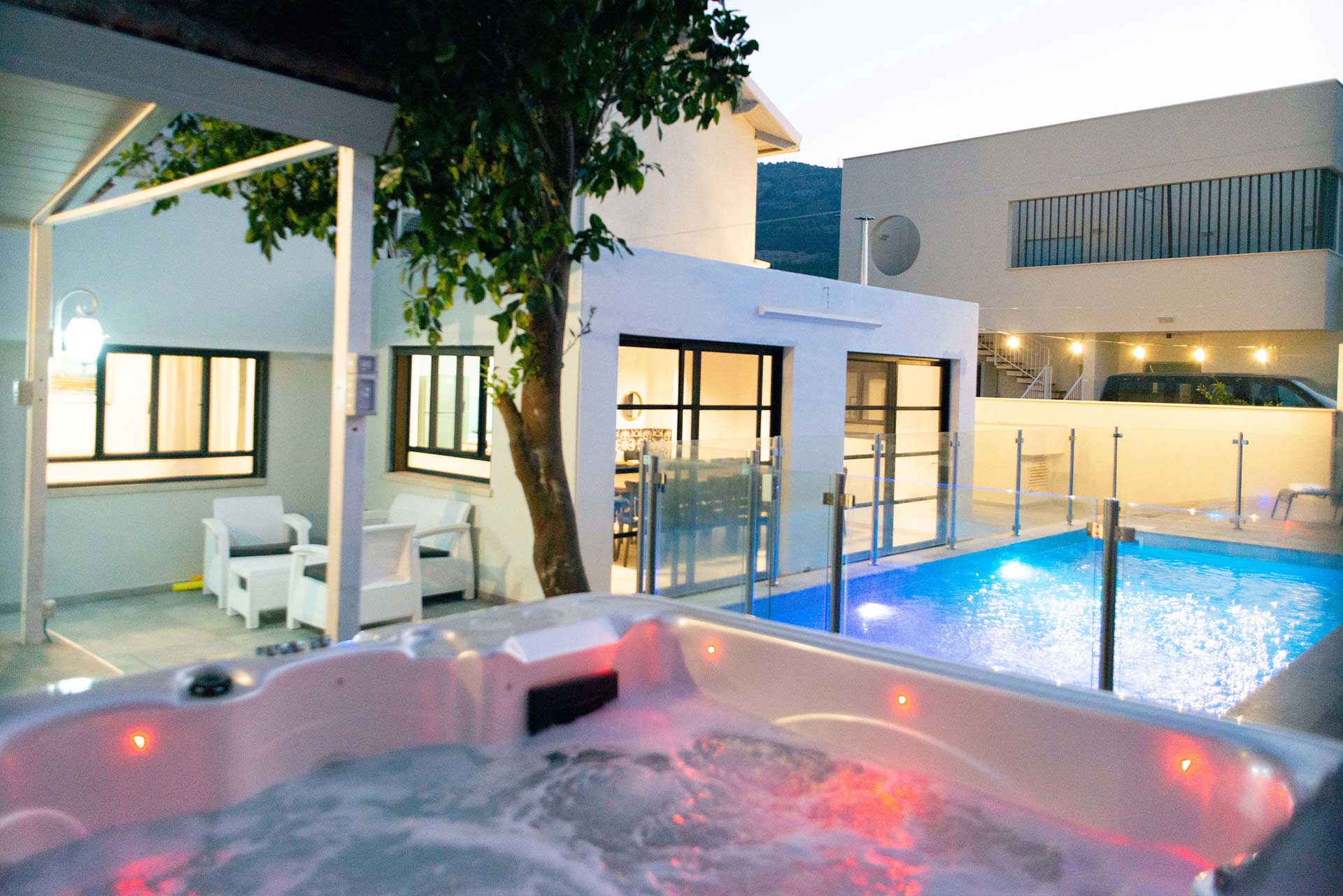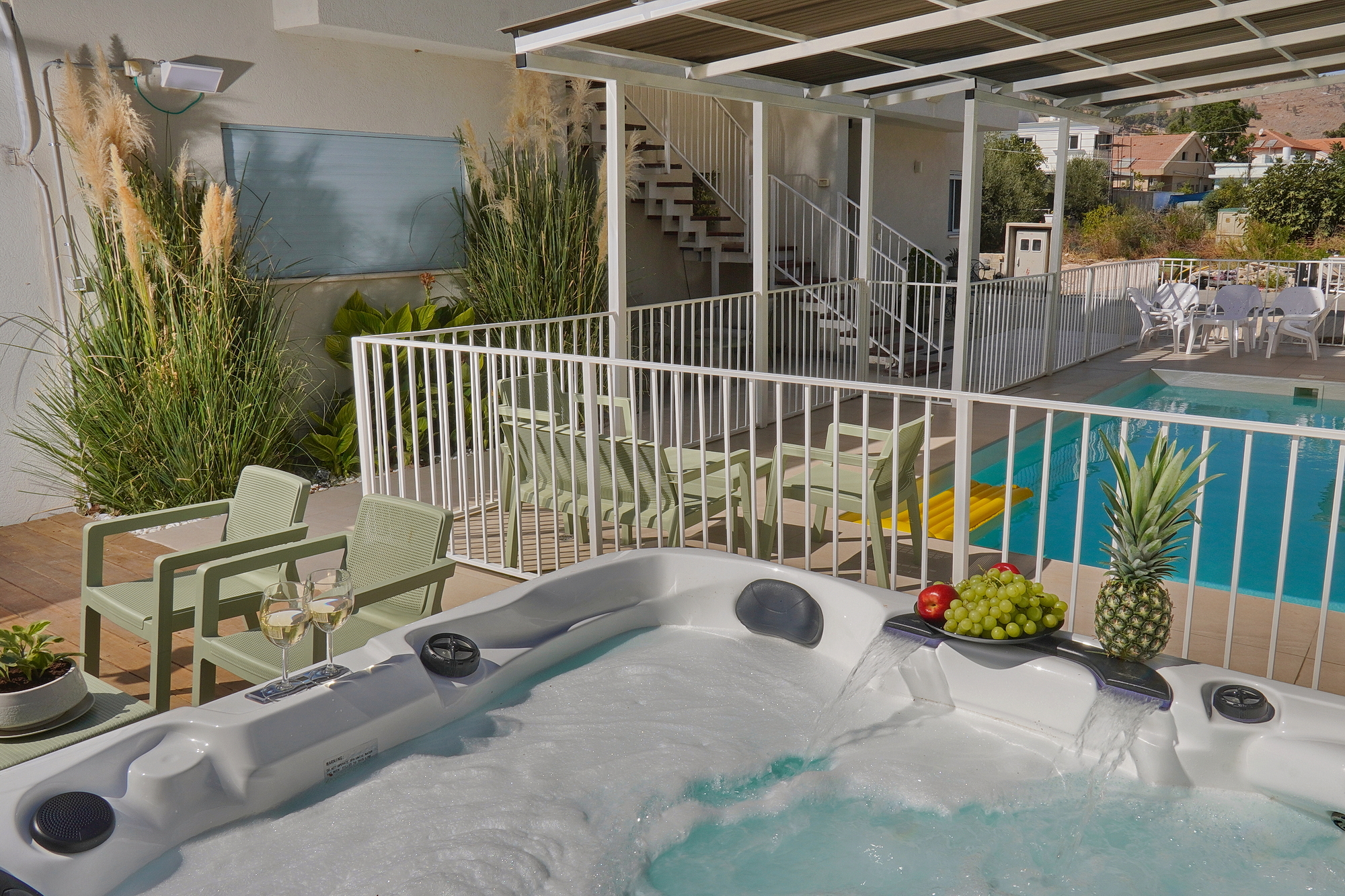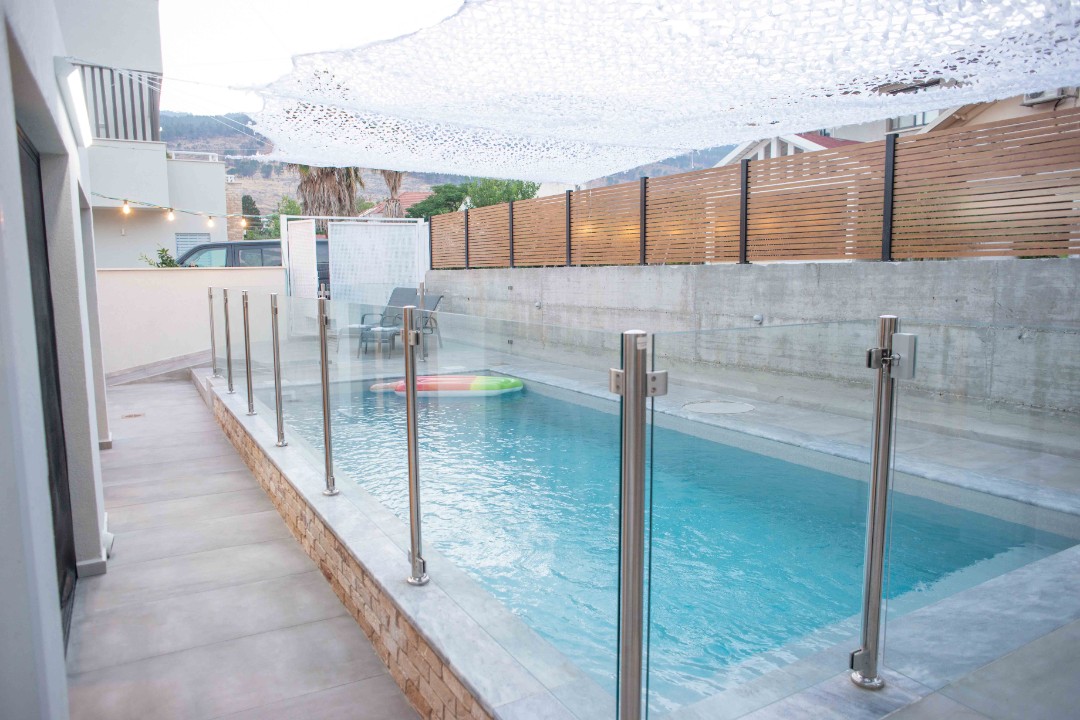 הבריכה מגודרת מסביב בגדר בטיחות עם שער ננעל מזכוכית, כדי שתוכלו לנוח בשקט מבלי לדאוג לילדים. בחצר יש גם גקוזי - גם ברור וכמובן פינות ישיבה כי אני מאמיין שבנופש צריך לתקשר עם בני דודים או חברים.
