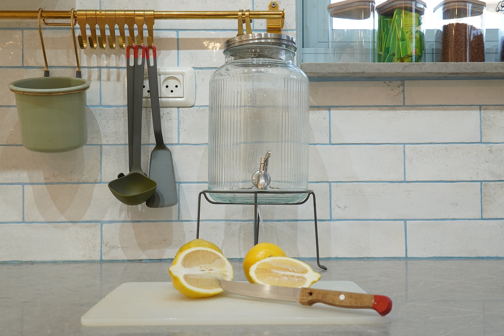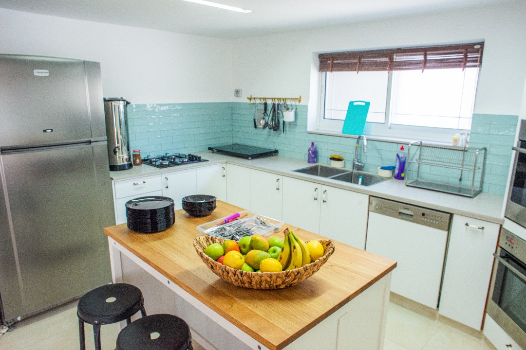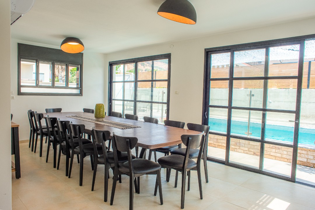 ורגע, לפני שנצא לחצר - אני רוצה שתדעו שגם במטבח ובחדר האוכל הושקעה המון מחשבה: קודם כל הוא ממש גדול ויש בו סטי כלים בשרי וחלבי לאלו מכם ששומרים כשרות. הוא מצויד גם בכל האביזרים הנלווים כמו סירים, מחבתות, כלי עבודה. אם בא לכם לבשל אוכל לשבת (אם לא בא לכם,יש פה קייטרינג מעולה בקרית שמונה)